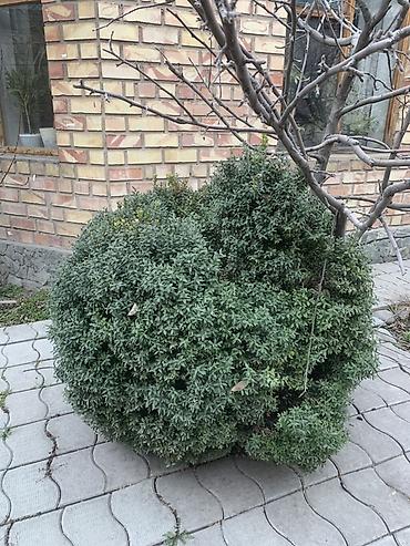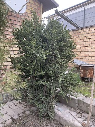 Вечнозелёный декоративный кустарник (похож на самшит/бирючину) для озеленения участка.