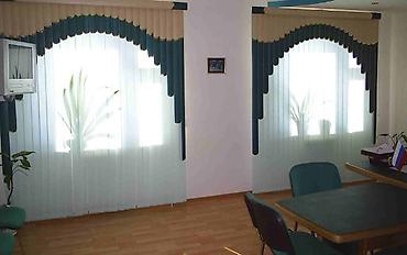 - Дизайн: комбинирование цветов (бирюзовый + бежевый на фото) и декоративные ламбрекены; возможны прямые и фигурные варианты