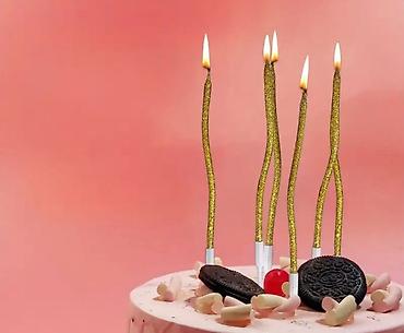 - Эффектный волнистый дизайн: длинные тонкие свечи с изящными изгибами создают праздничный акцент на любом торте или капкейках.