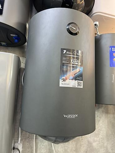 Водонагреватель Wasser (German technology) — настенный электрический накопительный бойлер серого цвета.