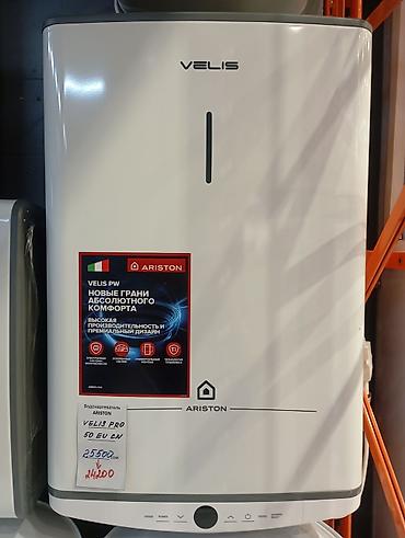 - Ariston Velis Pro 50 EU IN — плоский электрический бойлер с премиальным дизайном, электронным управлением и индикатором нагрева. Универсальный монтаж (вертикально/горизонтально), быстрый нагрев, технология защиты бака Ti-Titanium, встроенные функции безопасности.