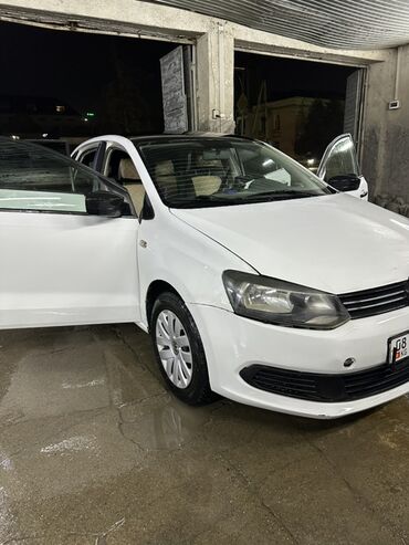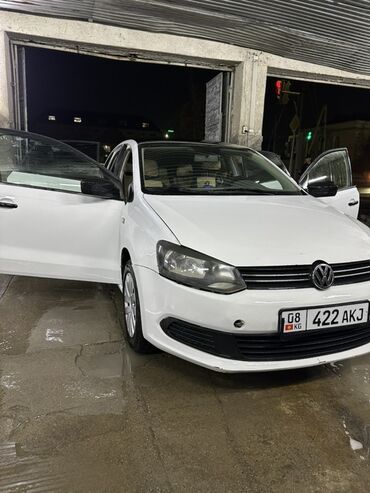 Volkswagen Polo седан, белый цвет, киргизские номера.