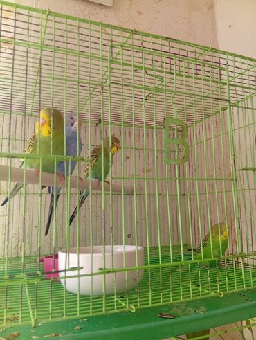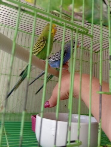 Пара волнистых попугаев. - Пол: самец и самка - Характер: дружные и спокойные - Отдаются вместе с клеткой Стоимость: 3000 сом. Если заберёте сами — 2500 сом.