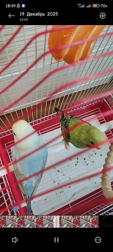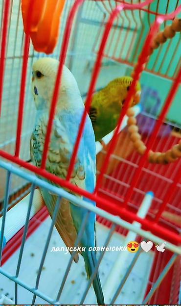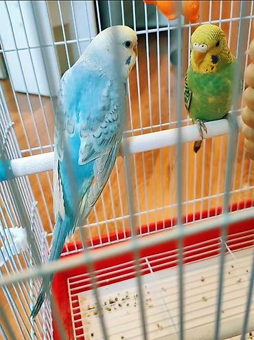 Волнистые попугаи — пара - Окрас: один голубой с белой головкой и