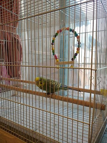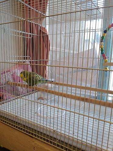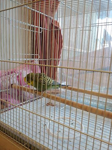 месте клеткой продаю ?рас: зелёно‑жёлтый с чёрным рисунком на крыльях, длинный сине‑чёрный хвост.