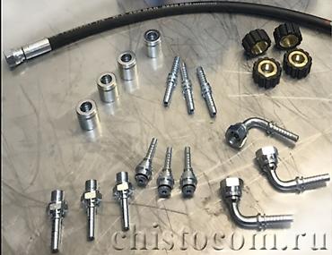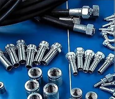 - Ассортимент фитингов и накидных гаек: прямые, угловые, метрические, дюймовые, BSP, JIC и др.