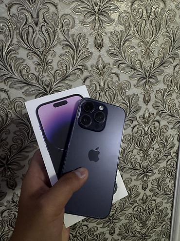 14 про Макс Смартфон Apple iPhone (линейка с вырезом Dynamic Island) в фиолетовом цвете. Экран безрамочный с Face ID, поддержка LTE. На фото — активный Always‑On/экран блокировки с крупными часами ...