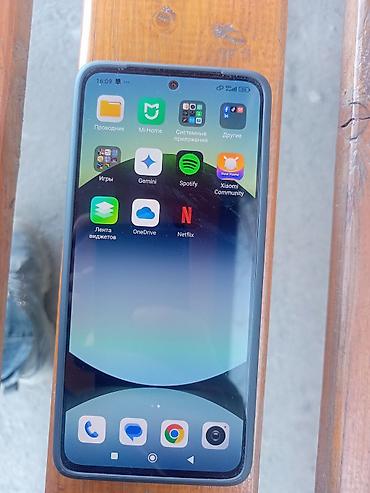 Смартфон Xiaomi (линейка Redmi/MI) с экраном с круглым вырезом по центру под фронтальную камеру. Установлена MIUI с фирменными приложениями (Mi Home, Проводник, Системные приложения) и поддержкой сервисов Google. На главном экране – иконки Spotify, Netflix, OneDrive, браузер Chrome, камера, телефон и сообщения.