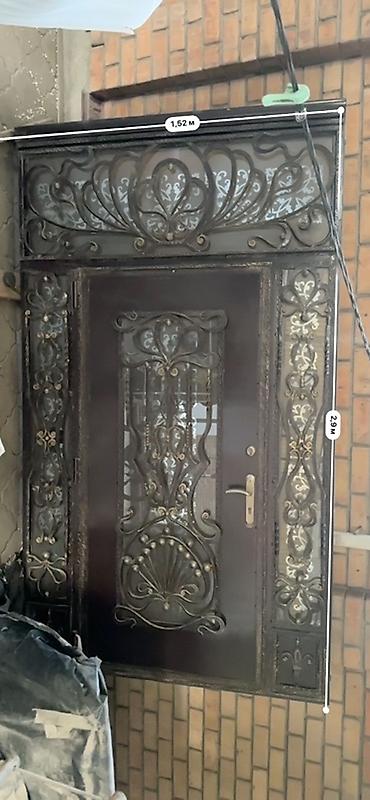 - Конструкция: массивная металлическая дверь с боковыми вставками и верхним фрамугом.