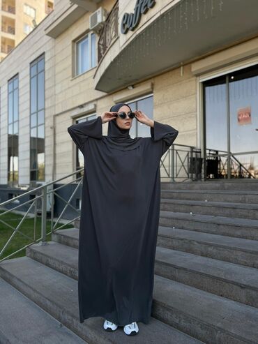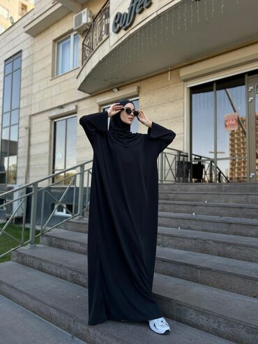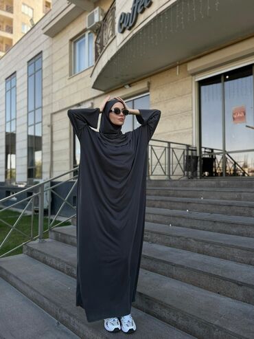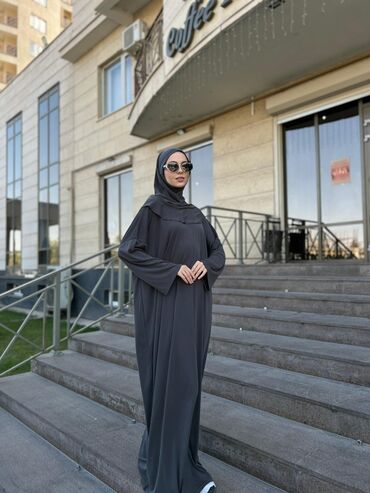 Абая с хиджабом из мягкой струящейся ткани с благородным сатиновым
