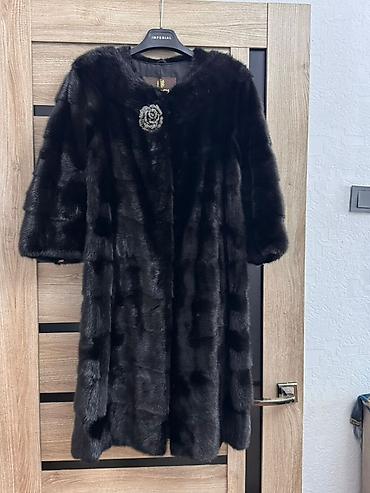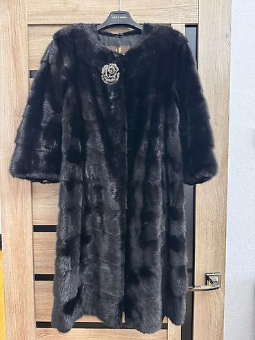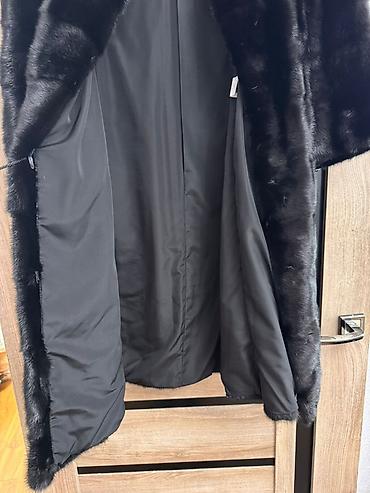 Размер: 42 (на бирке). Длина — примерно до колена. Отлично сочетается с вечерними и повседневными образами, даёт тёплую посадку без утяжеления. Тихий роскошный блеск меха, мягкость ворса и аккуратная поперечная раскладка подчёркивают статусный вид изделия.