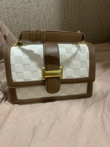 - Цвет: молочный (корпус) + теплый бежево-коричневый кант и ремни; фурнитура — матово-золотистая.