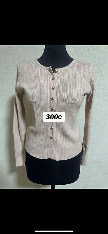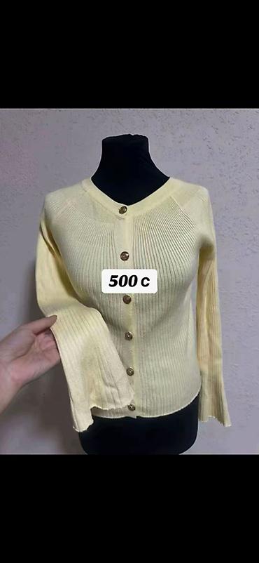- Светло‑желтый трикотажный кардиган в рубчик на пуговицах — 500 с.