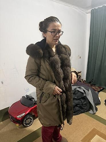 - Объёмный меховой декор: густая меховая планка по борту и воротнику/капюшону, мех на манжетах