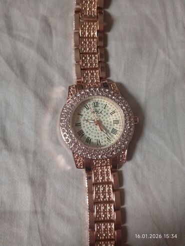 Женские наручные часы в стиле люкс, цвет розовое золото.
