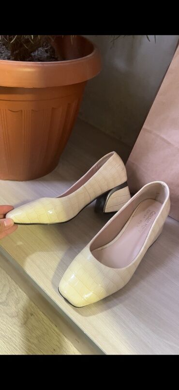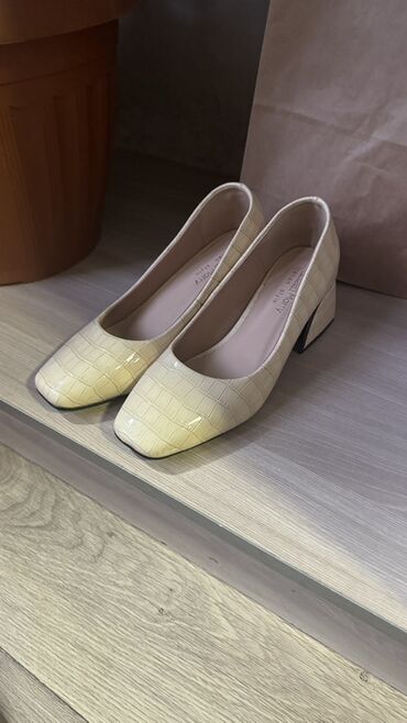Туфли-лодочки женские, бежевые (сливочно‑желтый оттенок) с лаковым