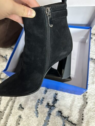 Женские ботильоны на высоком каблуке - Цвет: черный - Материал верха: гладкая кожа - Носок: заостренный - Каблук: шпилька, высокая, изящный силуэт - Застежка: боковая молния - Декор: ремешки с ме...