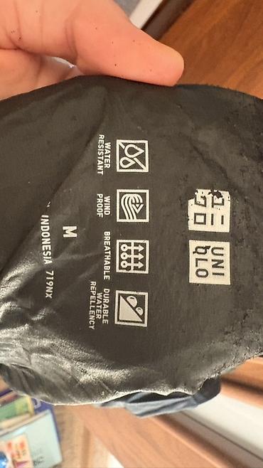 Uniqlo, старые коллекции. Плащу уже несколько лет, визуально все отлично. При легком дожде защищает отлично. Сильный дождь выдерживает, но где-то полчаса.