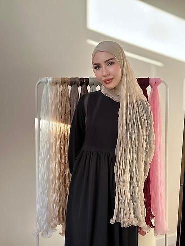Женские платки/хиджабы - Модели: классические прямоугольные и облегающие варианты для удобной посадки. - Материалы: - Легкая струящаяся ткань с эффектом «гофре»/крэш — полупрозрачная, мягкая, пл...