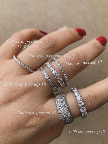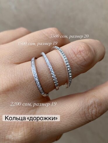Кольца «дорожки» с инкрустацией камней (серебро, белые фианиты/кристаллы). Аккуратные ровные дорожки, разная ширина и плотность камней — от тонких до многорядных, подходят для повседневного ношения и сочетания между собой.