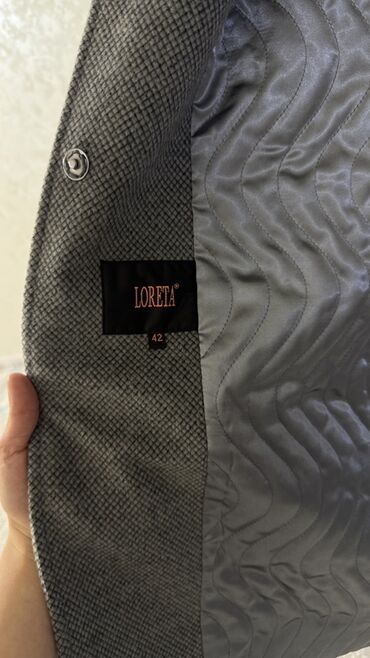 Женское пальто Loreta, размер 42 (на ярлыке). - Цвет: серо-коричневый меланж. - Материал верха: плотная шерстяная ткань. - Утеплённая стёганая подкладка. - Застёжка на пуговицы. - Съёмный...