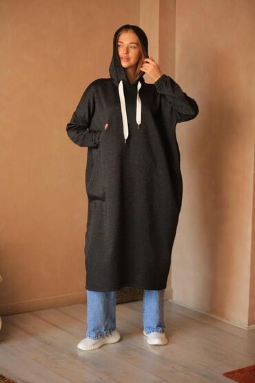 Платье миди из трикотажа, черное. - Фасон: облегающее, с вертикальным рубчиком, длина миди до щиколотки. - Рукава: длинные. - Горловина: круглая, закрытая. - Ткань: эластичный трикотаж, мягко подч...