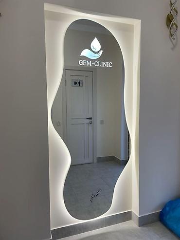 - Дополнительно: возможно нанесение надписей/логотипа на зеркало (пример на фото: GEM‑CLINIC, you are PURE MAGIC @Mirk.Studio).