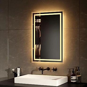 - Подсветка: интегрированная LED‑лента по периметру с мягким равномерным свечением; варианты оттенков на фото — теплый и холодный белый.