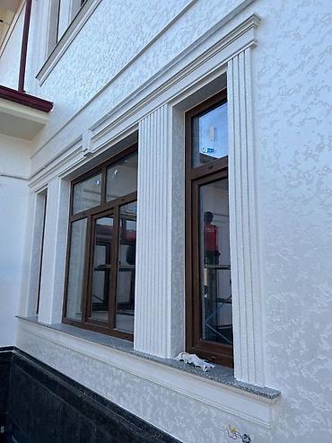 - Архитектурные элементы из фасадного декора: наличники, подоконные пояски, пилястры, карнизы. Подчеркивают оконные проемы и углы, формируют классический внешний вид.