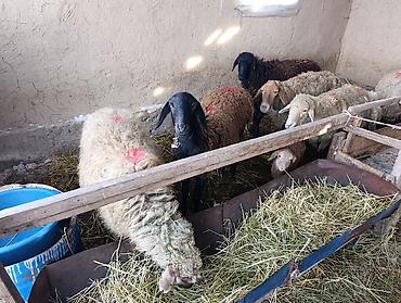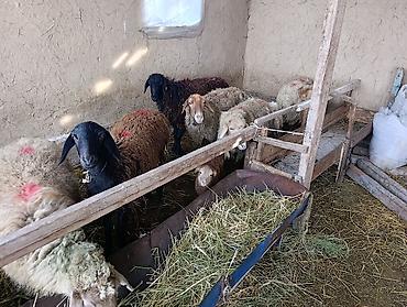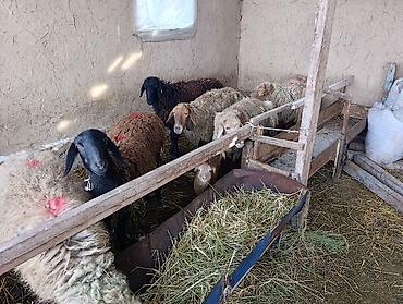 Бооз койлор 1 козулуу беш бооз Предлагаются живые овцы, представленные в различных окрасах, включая белых, черных и коричневых особей. Среди них видны как взрослые животные, так и молодые ягнята. Овцы находятся в загоне, где есть кормушка с сеном, что указывает на их содержание в условиях фермы или подворья. Животные подходят для разведения или содержания в личном хозяйстве.