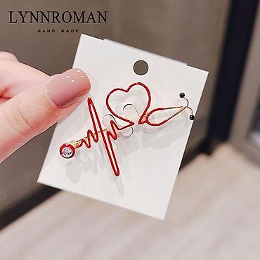 - Брошь-значок в виде линии ЭКГ с сердцем и стетоскопом; акцентный кристалл на «датчике».