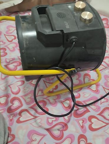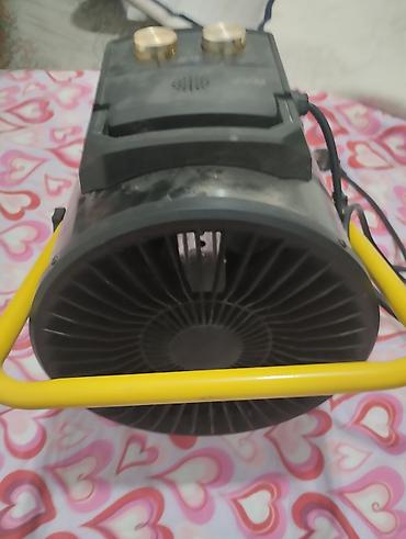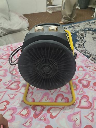 - Напольная электрическая тепловая пушка на металлической подставке-желтой раме для устойчивости и удобного наклона.