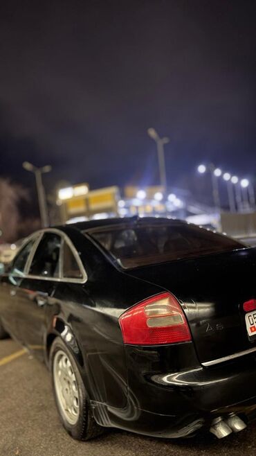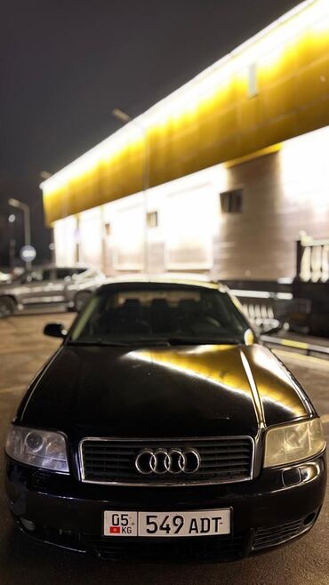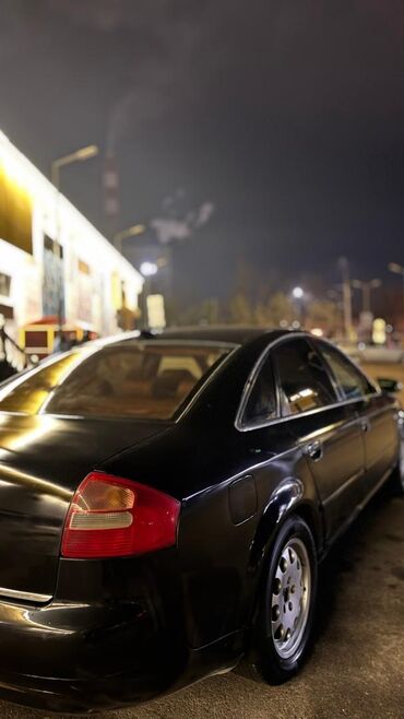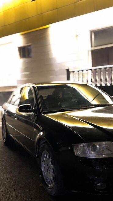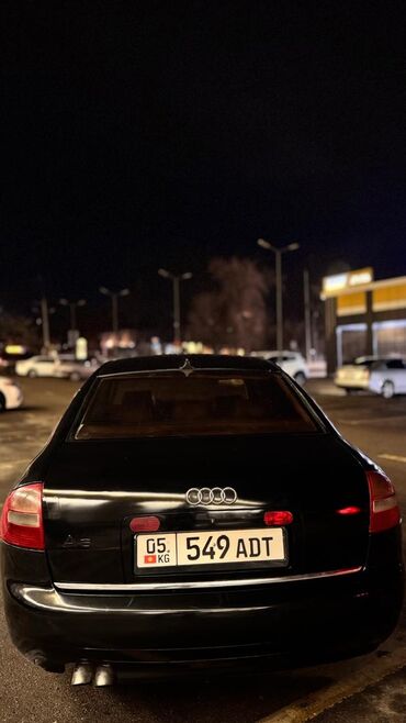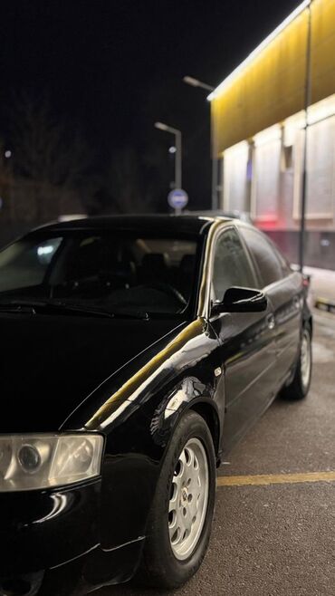 Audi A6 седан, кузов C5 (рестайлинг). Черный цвет, 4-дв., европейский дизайн с фирменной решеткой и логотипом из четырех колец. Киргизские номера.