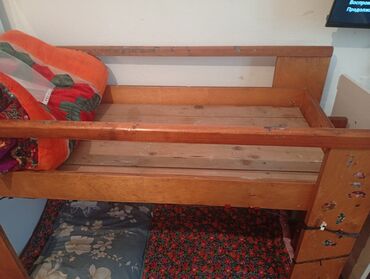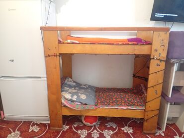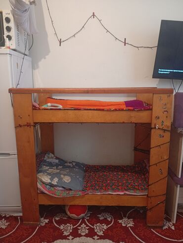 - Габариты по фото: стандартная детская/подростковая двухъярусная, ориентировочно под матрасы около 70–80 см шириной и 160–180 см длиной.
