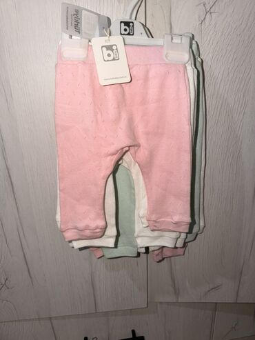 2) Набор мягких брючек для малышей на широкой эластичной резинке. Несколько базовых цветов в пастельной гамме (розовый, молочный, мятный и др.), фактурный трикотаж с ажурным узором.