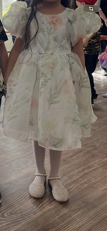 Нарядное детское платье с цветочным принтом.