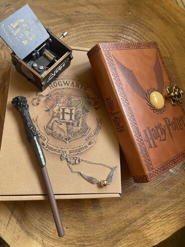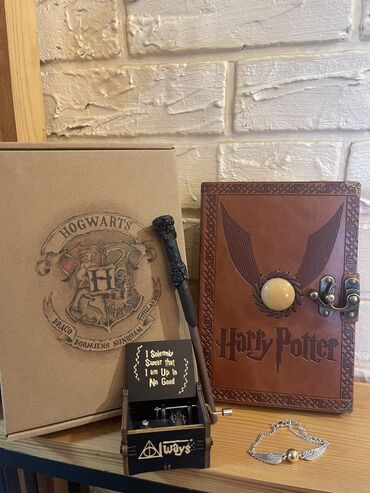 Набор Гарри Поттера • Подарочная коробка с лого «Хогвартс» • Кожанный блокнот с картонными, плотными листами • Ручка (палочка) + 1 запасной стержень (пишет черным) • Музыкальная шкатулка, ручной з...