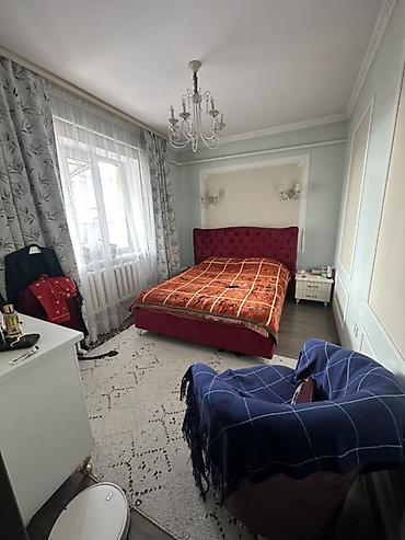 - Спальня с большим окном, люстрой, двуспальной кроватью, шкафом-купе/гардеробным шкафом, радиаторным отоплением.