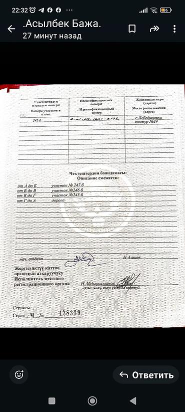 - Привязка земельного участка (ситуационный план) с отметками и подписью исполнителя местного регистрационного органа прилагается.