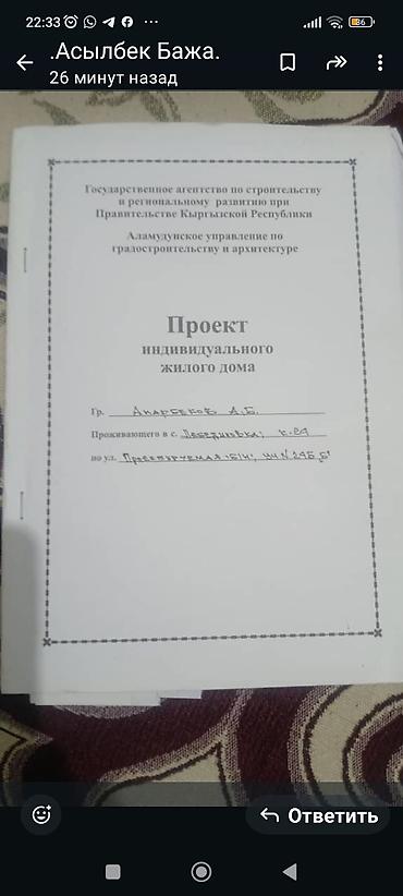 - Имеется проект индивидуального жилого дома, согласованный через Аламудунское управление по градостроительству и архитектуре.