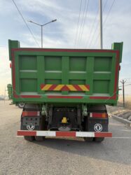 Подходит для перевозки сыпучих материалов (песок, щебень, грунт), строительных и дорожных работ. Яркий зеленый цвет, высокие борта, удобная разгрузка назад.