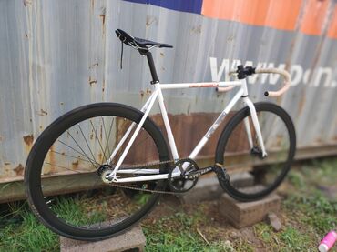 Трековый/фикс велосипед в минималистичном стиле. Характеристики и комплектация: - Рама и вилка: жесткие, дорожные, с горизонтальными дропаутами (под фикс/синглспид). - Привод: одна передача, без п...