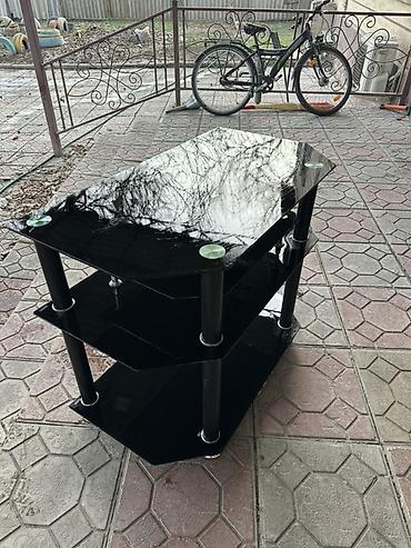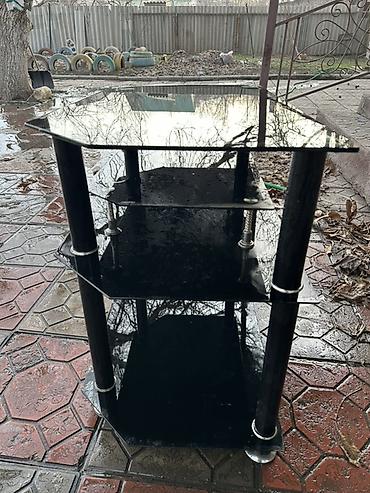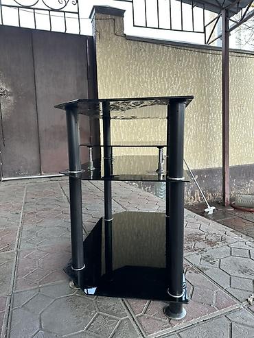 - Конструкция: 3 полки, верхняя и нижняя — шестигранной формы с скругленными углами; средняя полка на регулируемых штырях-фиксаторах.