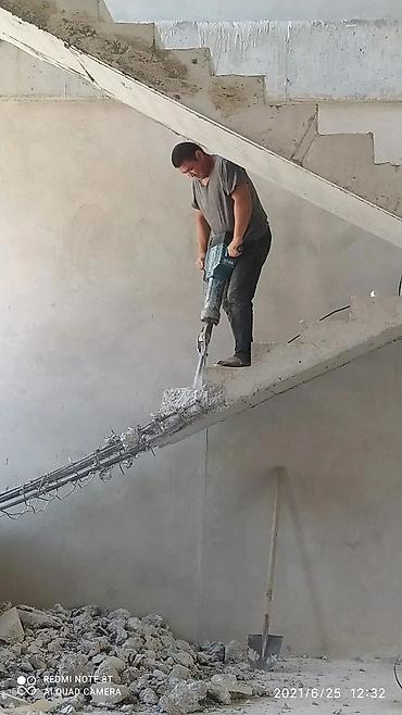 - Работаем отбойными и гидравлическими молотками, резка алмазными дисками/канатами, штробление под закладные.