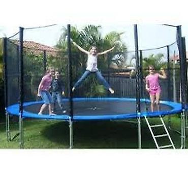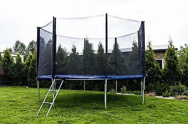 Комплект: батут, защитная сетка, стойки, мягкий бортик, лестница. Цвет обвязки: синий, сетка чёрная.
