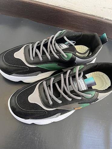 - Цветовая гамма: черный с серыми и зелеными вставками, белая подошва, серые шнурки. Петли на пятке с градиентом бирюзового.
