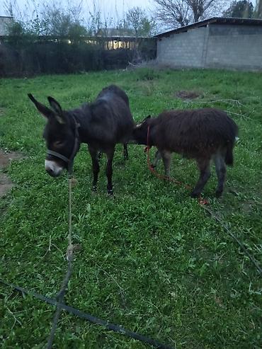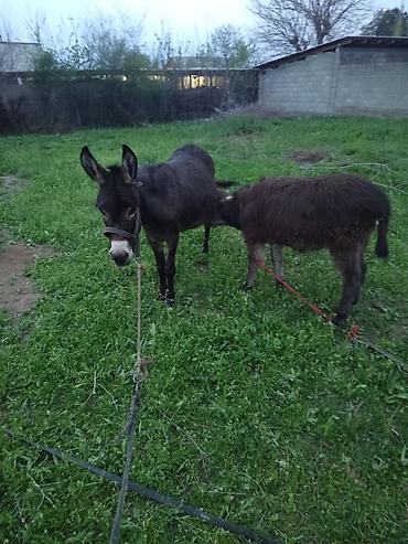 - Вид: домашние ослы, взрослая особь и молодой ослик