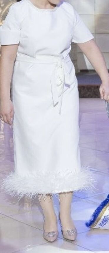 В продаже шикарное вечернее платье со стразами и перьями на рукавах Было надето один раз на мероприятия на 4 часа В отличном состоянии! Размер подойдет на 52-54