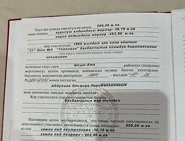 - Распределение площадей по акту: под постройки — 36,10 м², под двор/сад — 463,90 м².
