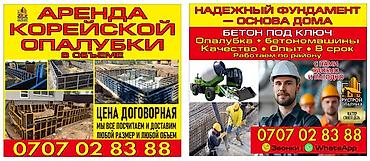 Аренда корейский опулавка, опалубки,опалубку Комплектация и размеры щитов: - 120×60 - 120×50 - 120×40 - 120×30 - Ак-Ордо 1–2–3, Ак-Оргё, Ала-Тоо, Военно-Антоновка, Заря, Арча-Башык, Кун-Туу, Кызы...